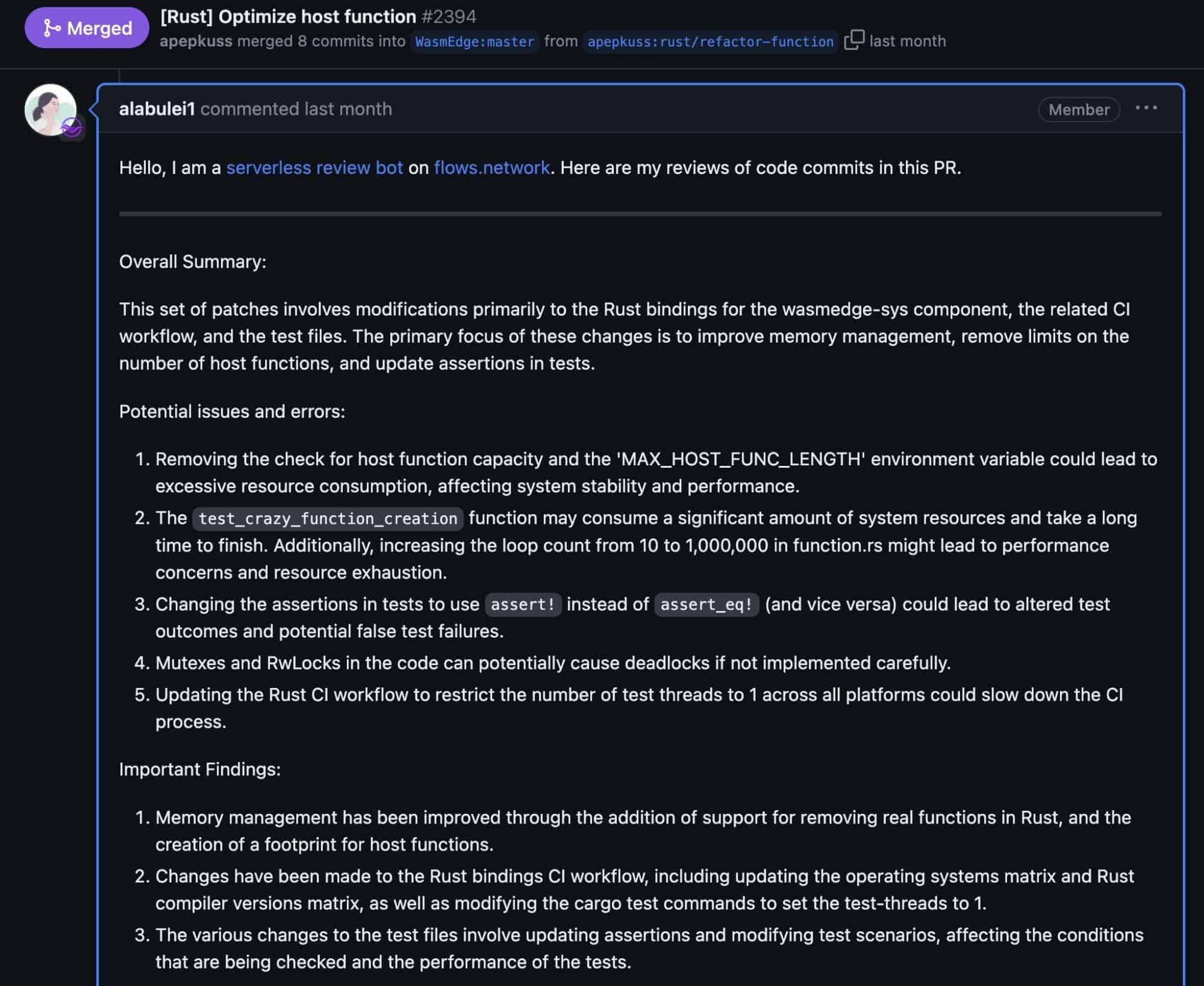 한줄 요약: WasmEdge 코드 리뷰 봇을 사용해서 생산적인 코드 리뷰하는 방법 제시