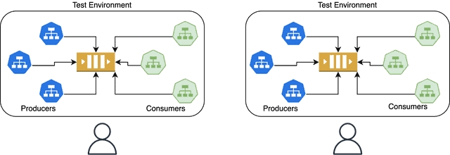 Kafka는 분산 시스템이기 때문에 테스트 환경을 설정하려면 브로커, 프로듀서, 컨슈머와 같은 여러 구성 요소를 설정해야 합니다. 보안, 복제, 파티셔닝 등을 고려하여 올바르게 구성해야 합니다. 또한, 특히 다양한 프로그래밍 언어와 프레임워크를 다루는 경우, Kafka에 퍼블리시하고 소비하는 서비스를 설정하는 데 많은 시간이 소요될 수 있습니다. 따라서 엔드투엔드 플로우를 격리된 방식으로 테스트하기 위해 Kafka를 포함하는 환경을 설정하는 것은 중요한 결정이 필요하게 됩니다.