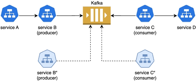 Kafka 또는 변경되지 않은 다른 서비스(예: A와 D)를 다시 배포할 필요 없이 전체 흐름 A → B" → Kafka → C" → D를 엔드투엔드로 테스트하세요.